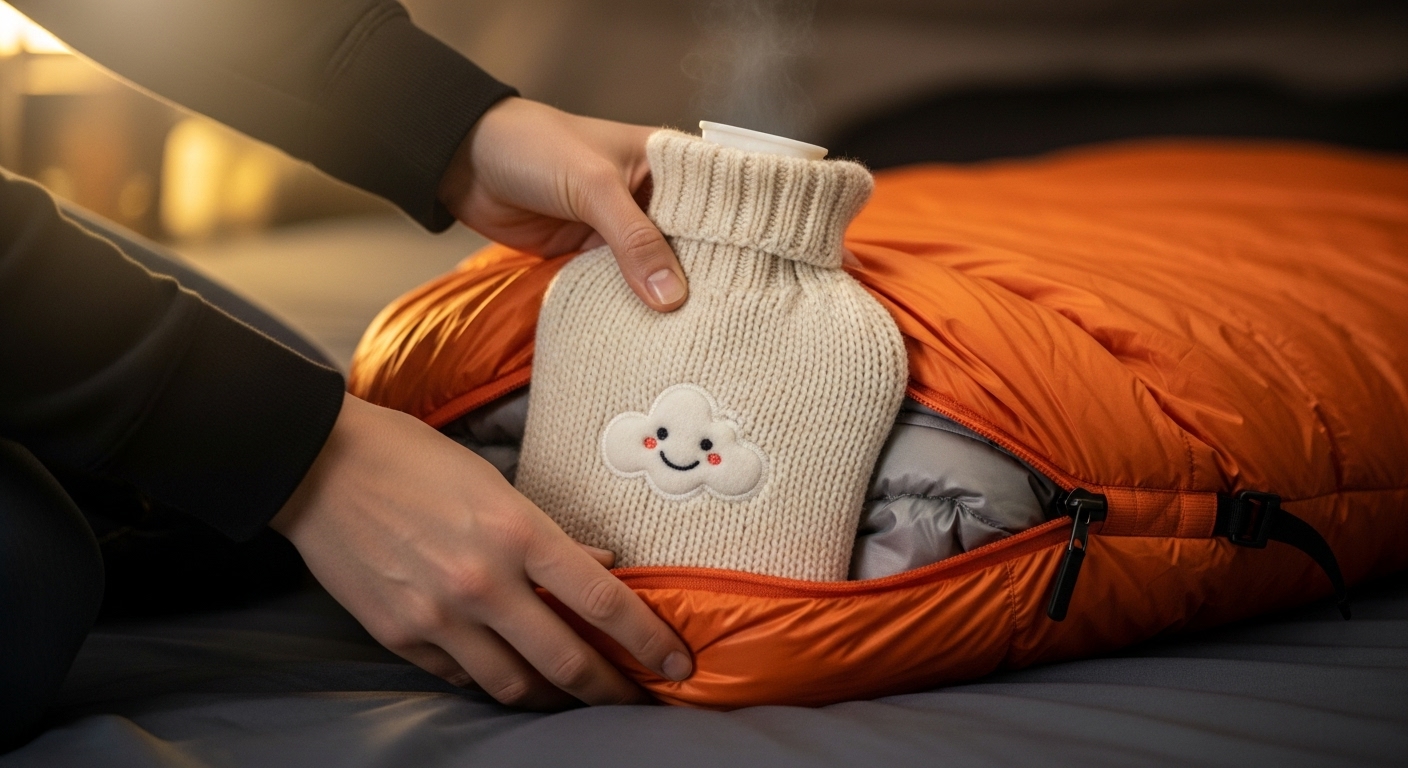 A: 저온 화상의 위험이 있어 직접 몸에 붙이거나 침낭 안에 넣는 것은 추천하지 않아요. 대신 침낭 커버를 사용하거나, 자기 전 침낭 안에 유단포(물주머니)를 잠시 넣어 데워두는 것이 훨씬 안전하고 효과적입니다.